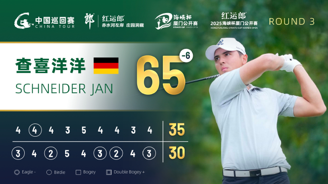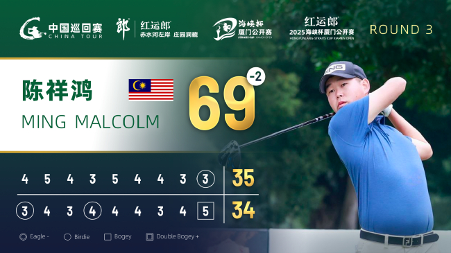 中国台北选手刘严鸿渐入佳境,状态一路攀升。尤其在后九洞迎来爆发,凭借精准的判断与流畅的推杆节奏,狂抓7只小鸟,总成绩交出-8的亮眼战绩,手感火热。从首轮的稳步适应到如今的强势发力,这般火热状态将在决赛轮延续,为赛场带来更多看点。