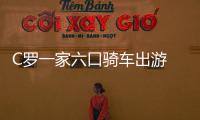 C罗一家六口骑车出游 迷你罗当起了两个妹妹的车夫? -